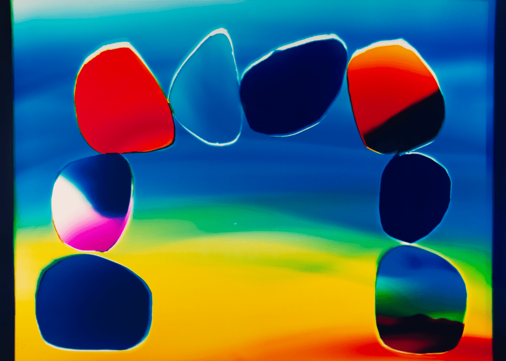 Analog Chromogenic Light Painting, on Fujiclear, mounted inside of a lightbox.