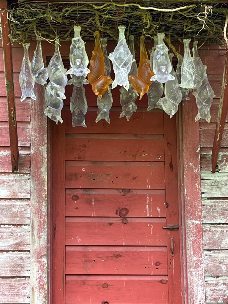 cast resin, rebar, chicken wire, pine roots